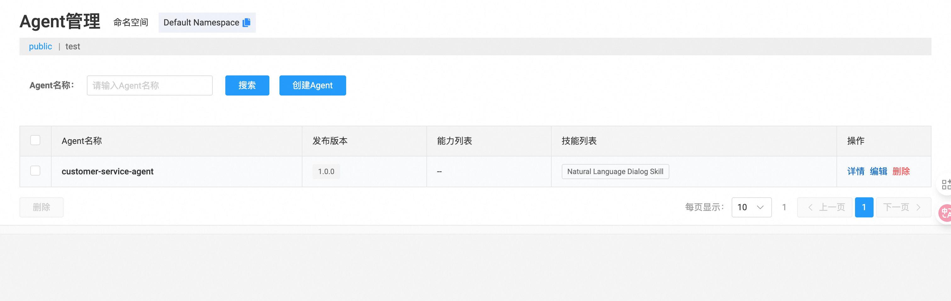 - 查看详情:点击 Agent 卡片进入详情页