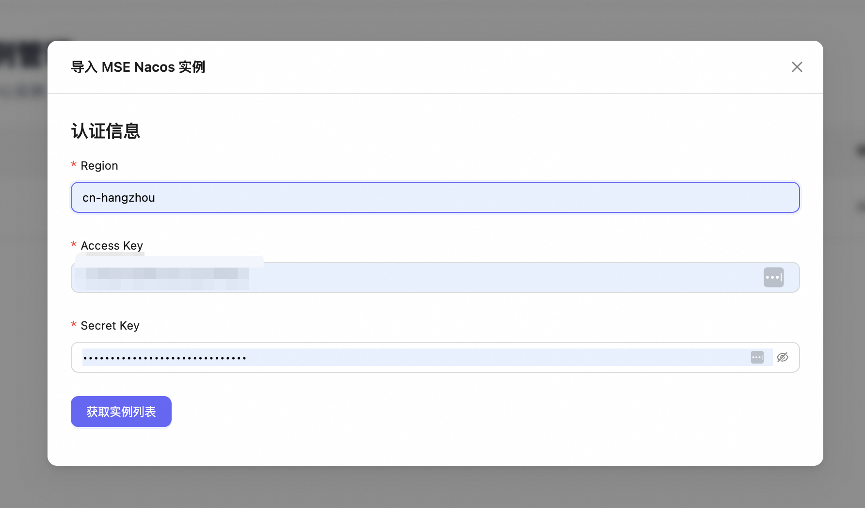 从列表中选择目标 MSE Nacos 实例,点击 “导入”