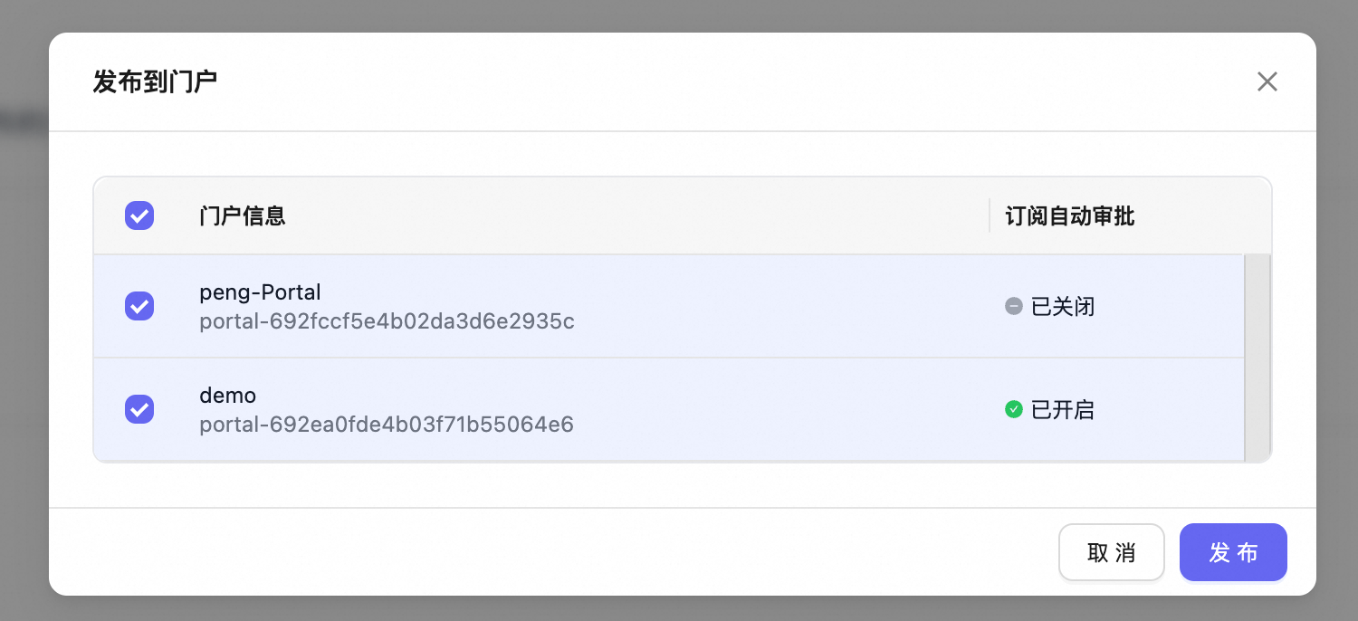 点击 “发布到门户”,选择目标门户(可多选):