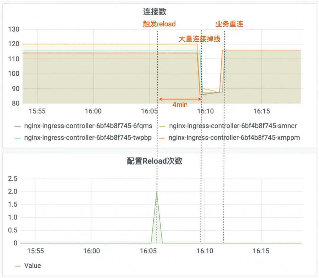 通过 Nginx Ingress 更新 Nginx 网关路由规则直接将域名和路径订正到 nginx.conf 配置文件,需要更新 Nginx 配置并重新加载才能生效。当应用存在长连接,如 websocket 的情况下,reload 操作会导致业务连接在一段时间后出现明显掉线。