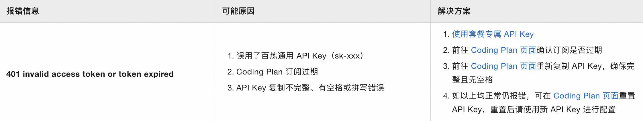 若出现以上情况,需要检查模型 API,我们这里以百炼 Coding Plan 为例: