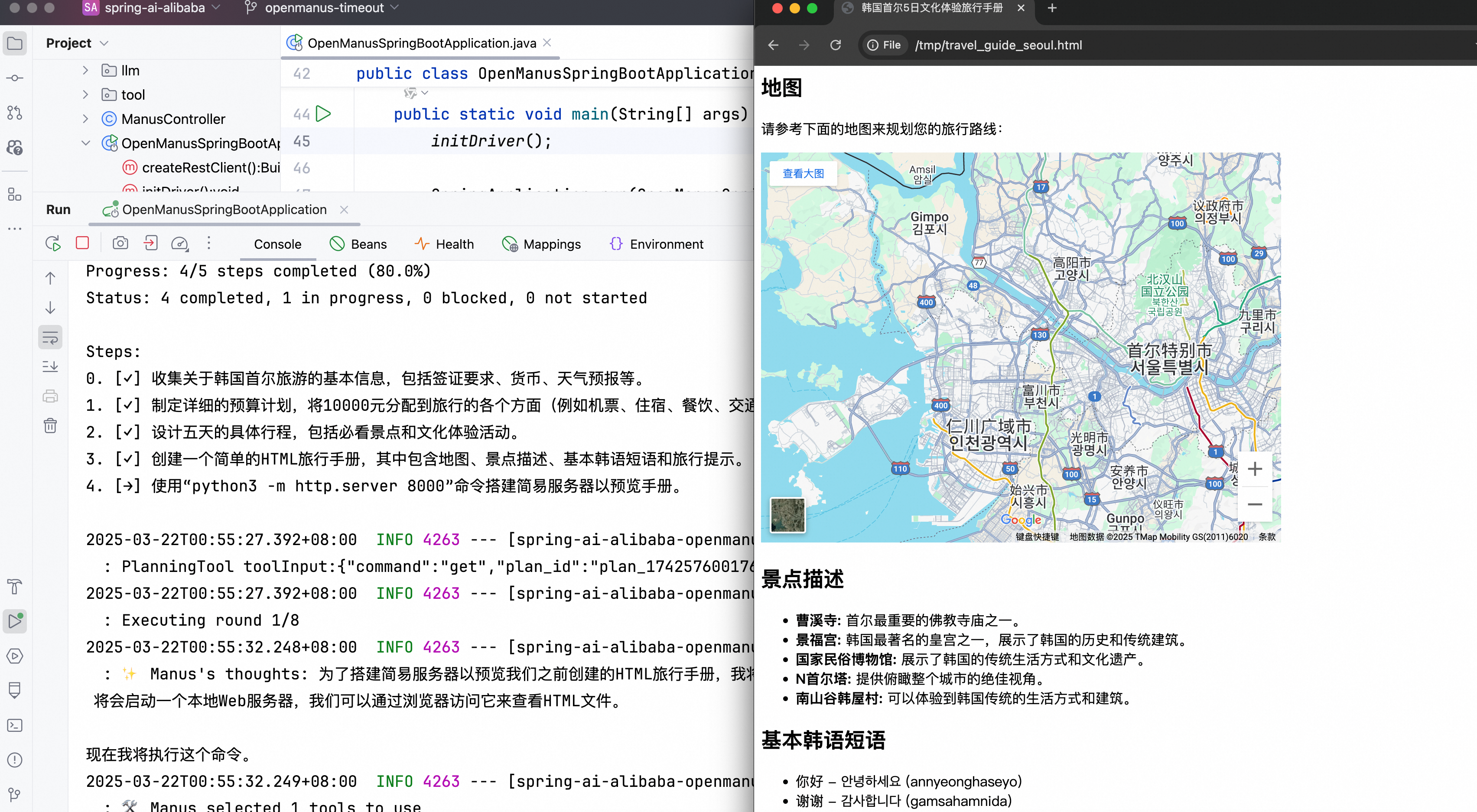 此次官方发布的 Spring AI Alibaba OpenManus 实现,包含完整的多智能体任务规划、思考与执行流程,可以让开发者体验 Java 版本的多智能体效果。它能够根据用户的问题进行分析,操作浏览器,执行代码等来完成复杂任务等。