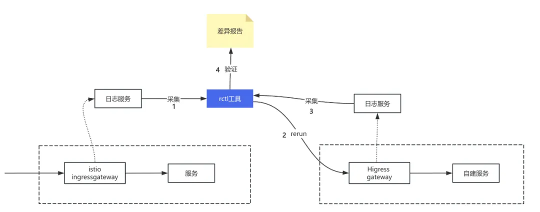 路由变更的数据一致性校验的方式是采集原来流量转发的日志,回放流量到网关分层后的测试环境中,再采集该测试环境的网关转发日志,两者做对比,输出差异报告,如果同一个请求(域名+url相同),转发到 upstream cluster 不同,则说明网关分层后修改了原来的转发逻辑,需要优化分层逻辑或者人工处理。