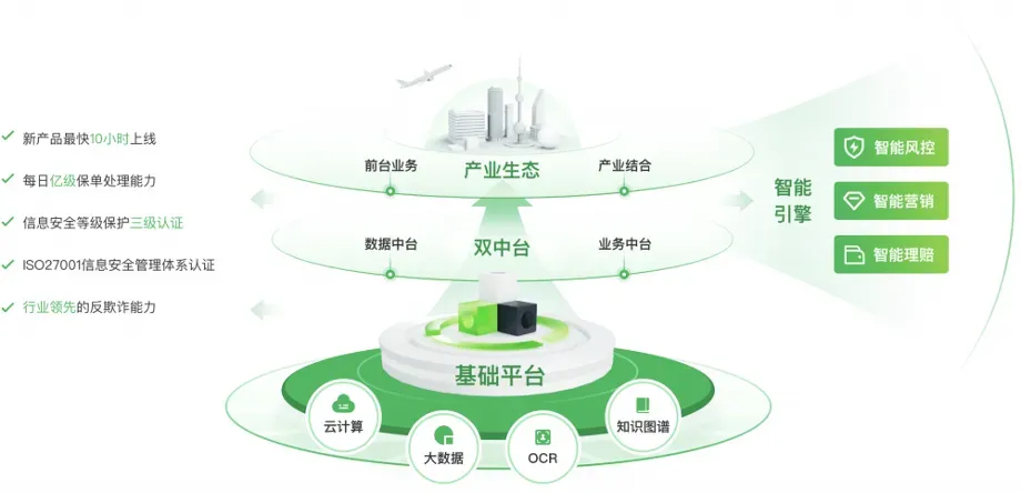 国泰产险融合数字经济与保险产业链打造全域数据价值交付体系——“数智双驱动系统”。系统以“小前台+大中台”为战略框架思维,基于数字化运营和技术共建等机制,构建起一体化保险经营管理平台。助力国泰产险从产品开发,到理赔体验都变得简单易得,让服务更高效、保障更全面。