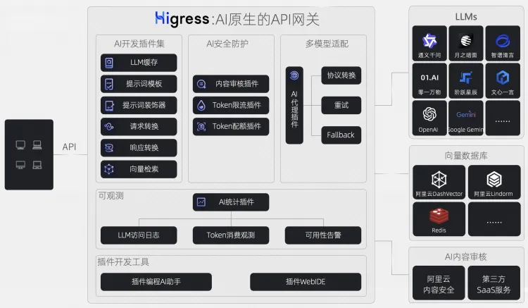 而 Higress 作为一款开源的 AI 网关工具,可以提供基于灰度+观测的平滑迁移方案: