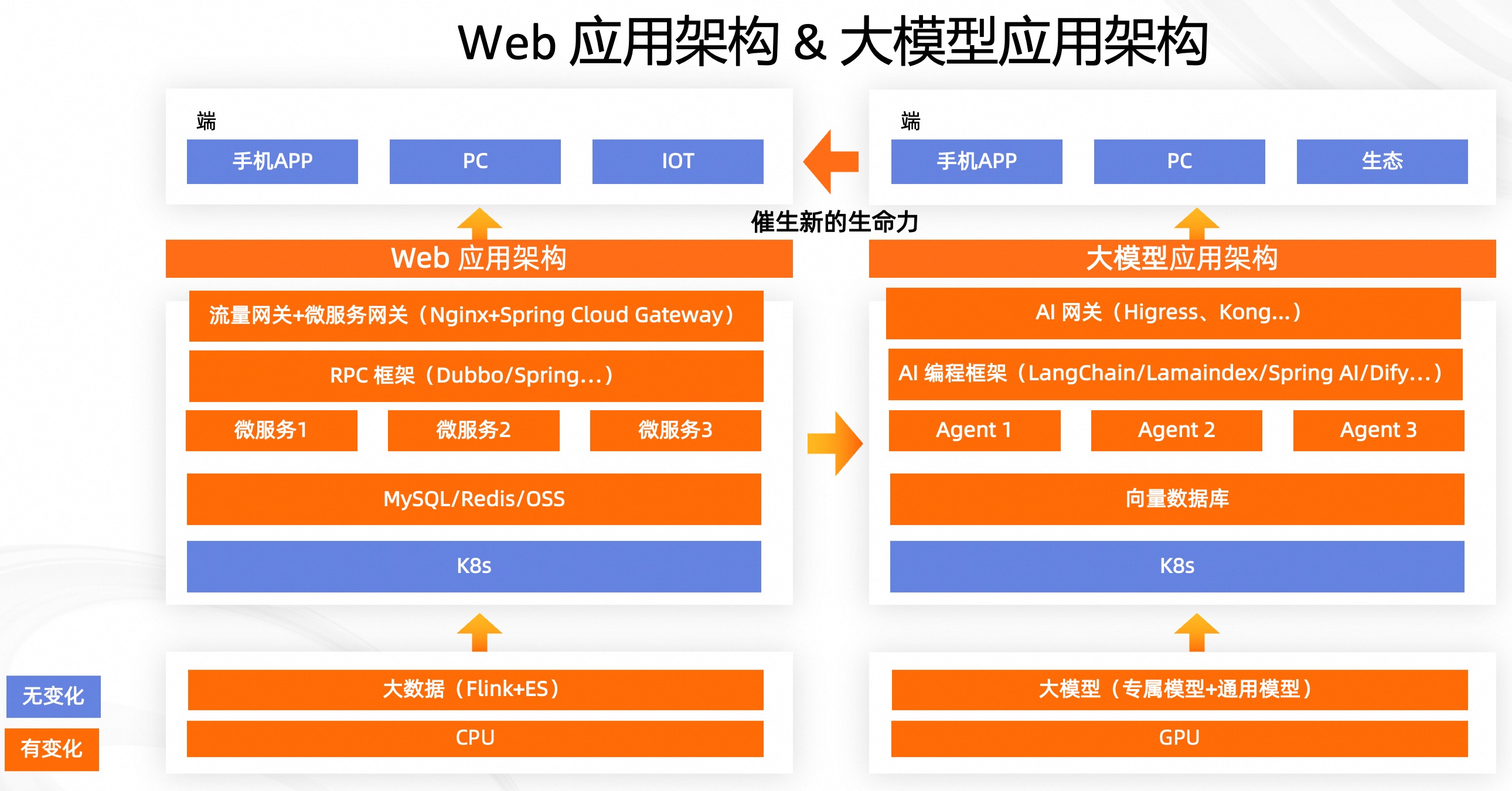 和部署 Web 应用一样,当我们在部署大模型应用时,也会遇到诸如流量突发与过载、网络波动与延迟、安全与合规问题、调用额度和成本管控、发布引起的线上故障等工程化难题,但是由于大模型应用的架构和 Web 应用有所不同,因此应对方案也会有所差异。如下图。