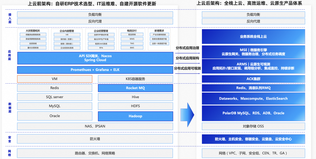 最终,热联在阿里云的专家团队的帮助下,找到了一条相对可行的解决路径,阿里云提出的全栈上云+云原生解决方案不仅可以满足热联提出的所有研发、运维和稳定的要求,还为企业未来的技术发展提供了强大的支持和灵活的扩展性。