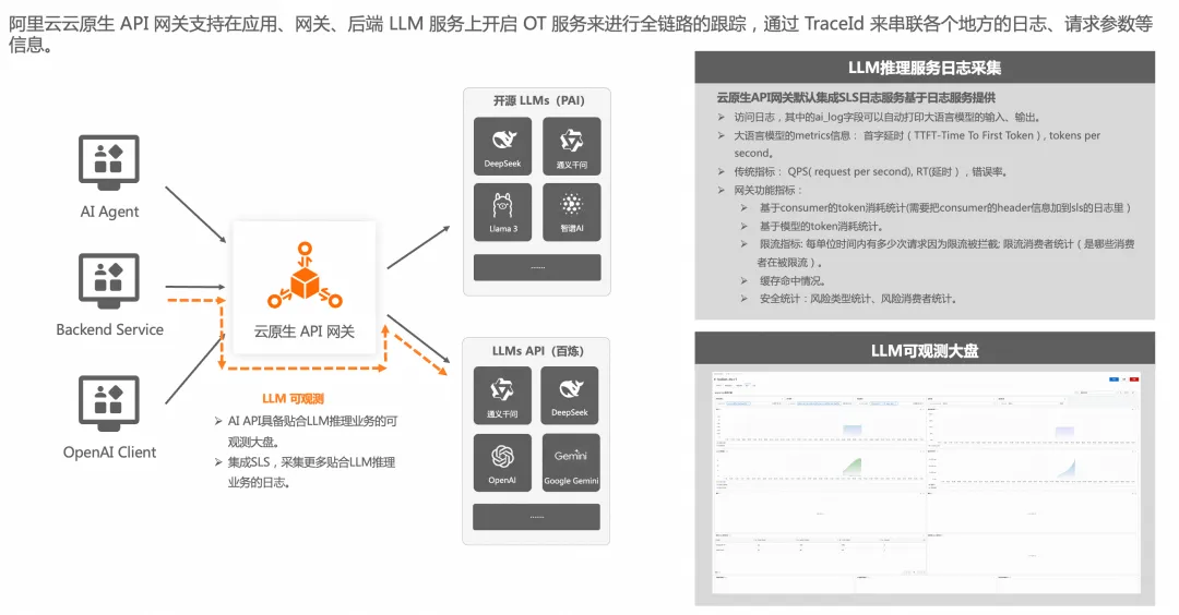 - LLM 可观测,应用、网关、后端 LLM 服务的全链路,贴合 LLM 推理的指标。