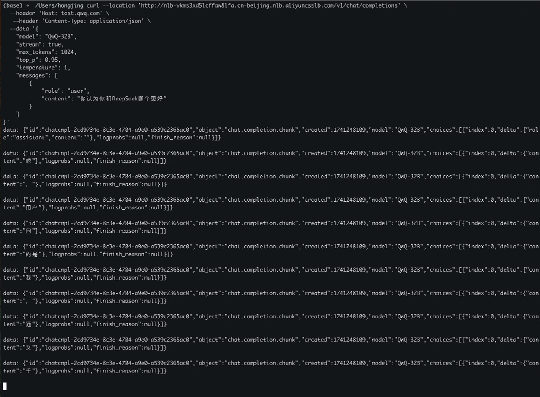 from openai import OpenAI# 统一访问Higress网关client = OpenAI( api_key="higress-api-key", # Higress控制台生成的二次鉴权密钥 base_url="http://localhost:8080/v1" # Higress网关地址)# 去往 deepseek 模型response_deepseek = client.chat.completions.create( model="deepseek-r1", messages=[{"role": "user", "content": "解释量子计算"}])# 去往 qwq 模型response_qwq = client.chat.completions.create( model="qwq-32b", messages=[{"role": "user", "content": "写一首七言诗"}],)- 对接 QwQ-32b 的效果: