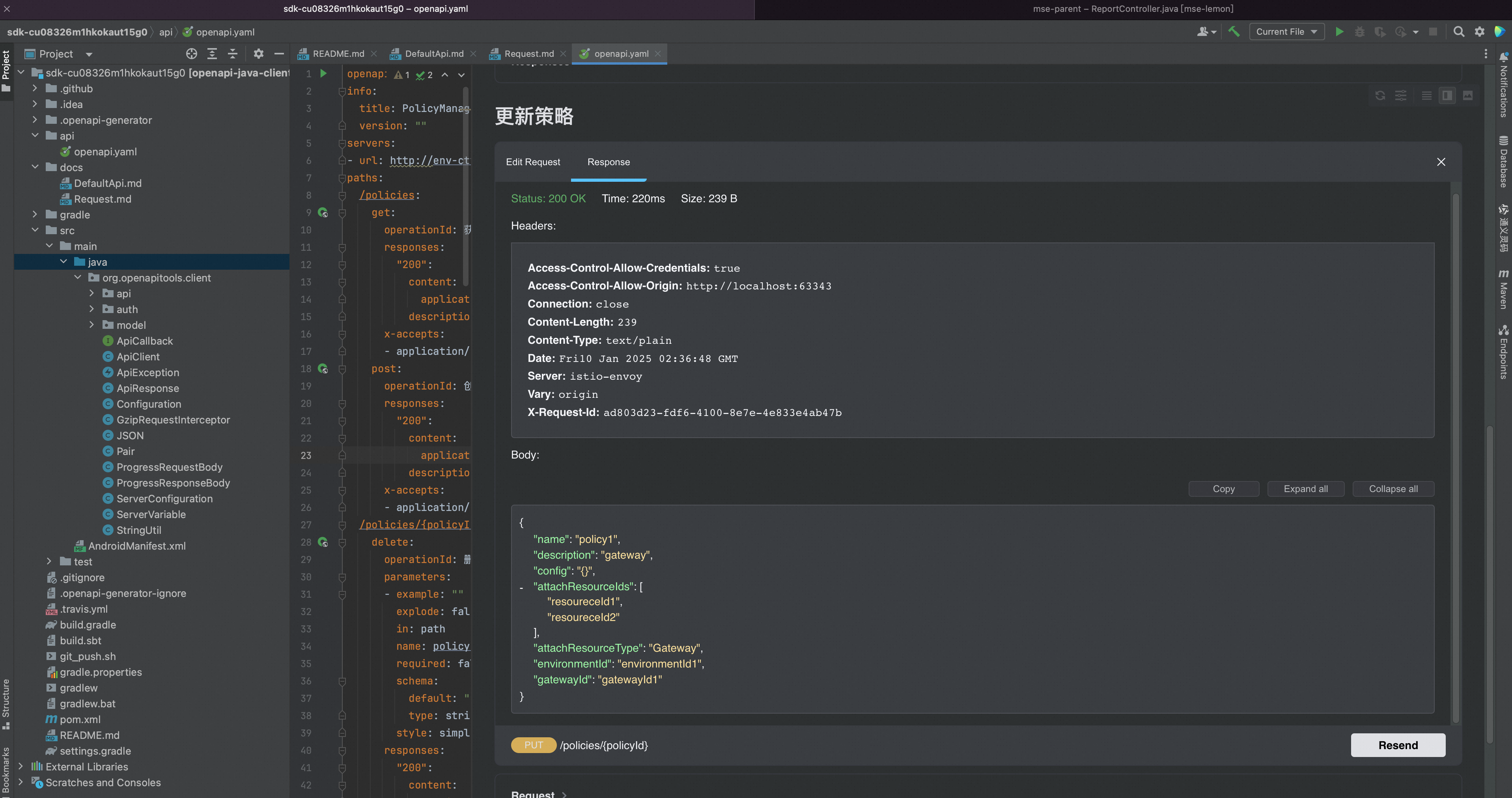 **OpenAPI Specification (OAS) **是一种用于定义和描述 RESTful API 的标准化格式。以下是基于 OAS 定义的策略管理 API 模型: