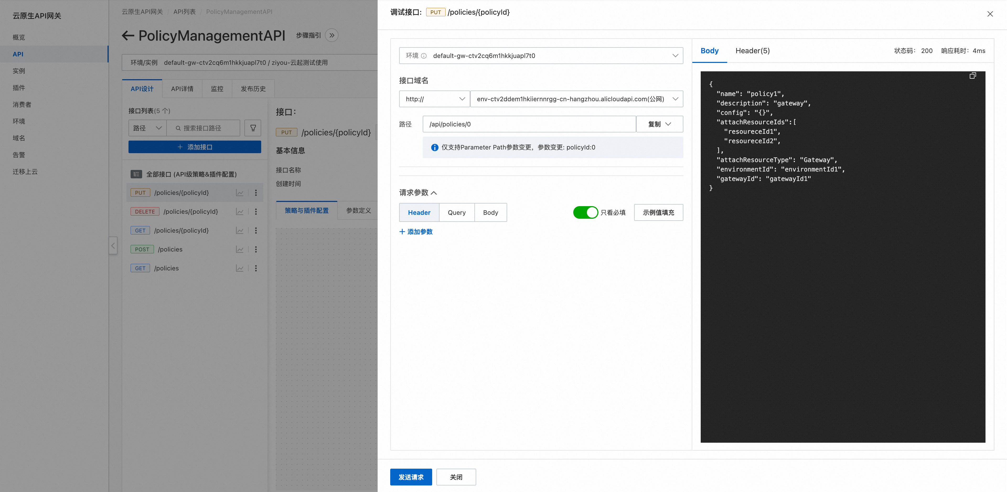 发布完成后,我们直接在API网关页面进行在线调试。