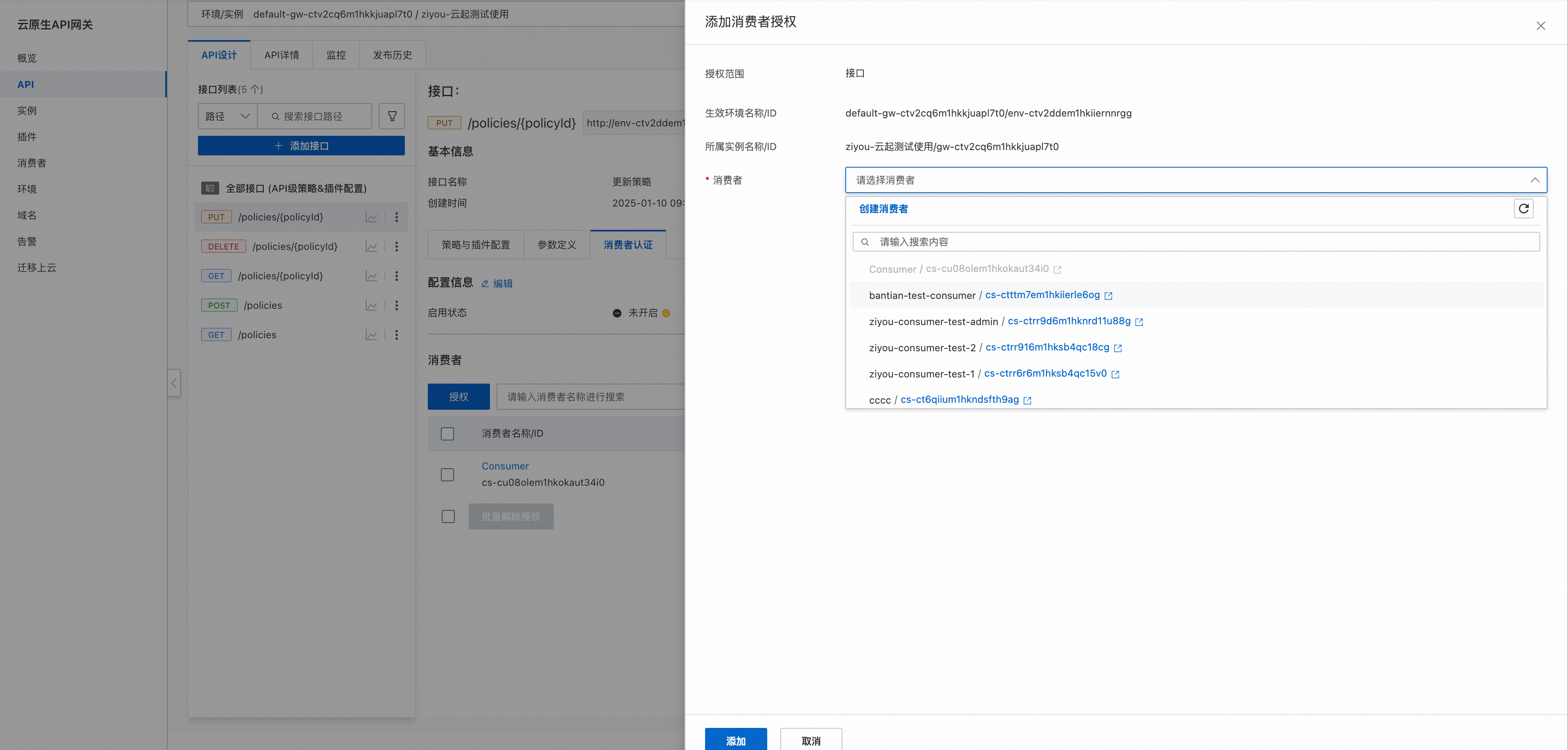 可以给当前API授权给不同的消费者去访问