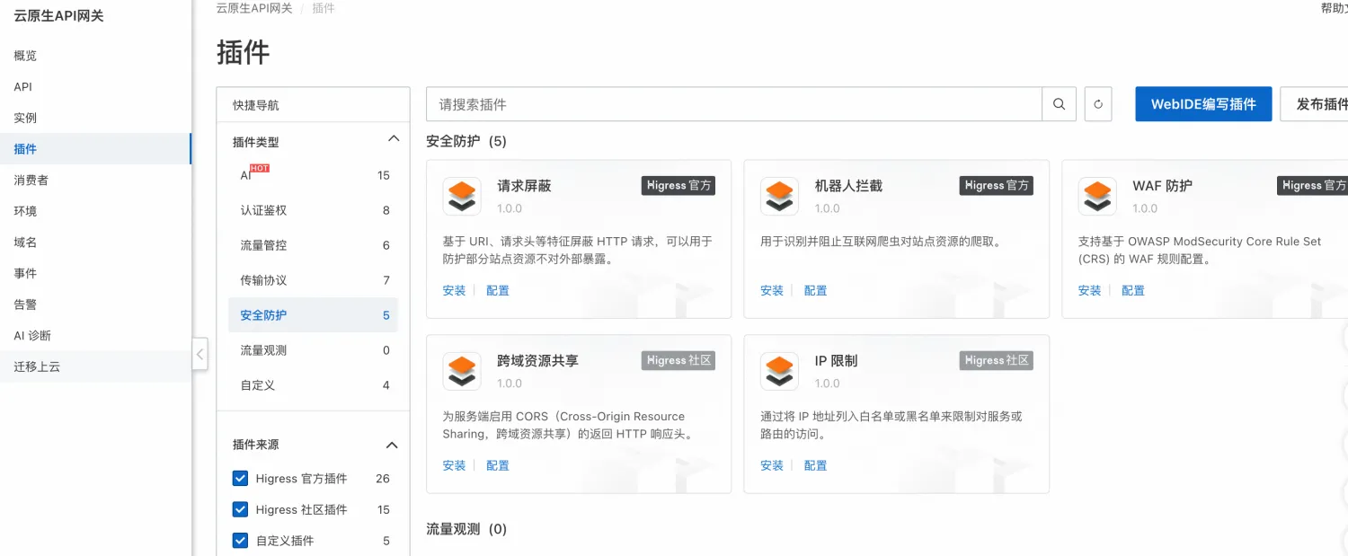 在 API 管理生命周期中,API 的安全性以及流量防护策略配置也是非常重要的一环。API 不仅是系统与系统之间的通信入口,还是安全和流量防护的第一道防线。阿里云 API 网关(API Gateway)提供了非常丰富的插件、策略能力,可以低成本帮助我们 API 做到完善安全防护以及系统防护能力,保证 API 的稳定性。