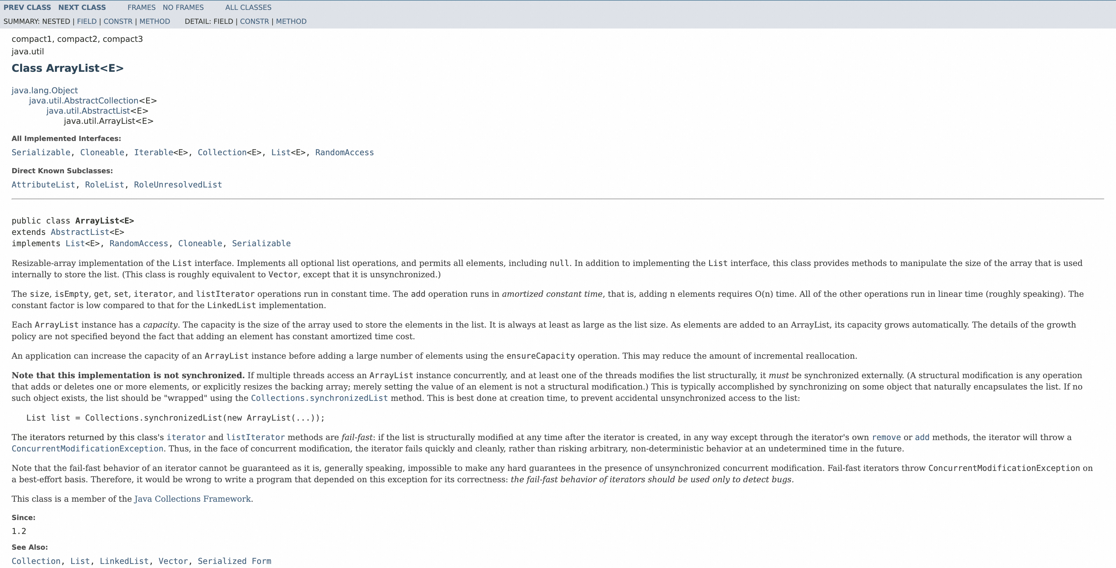 JDK ArrayList 文档
