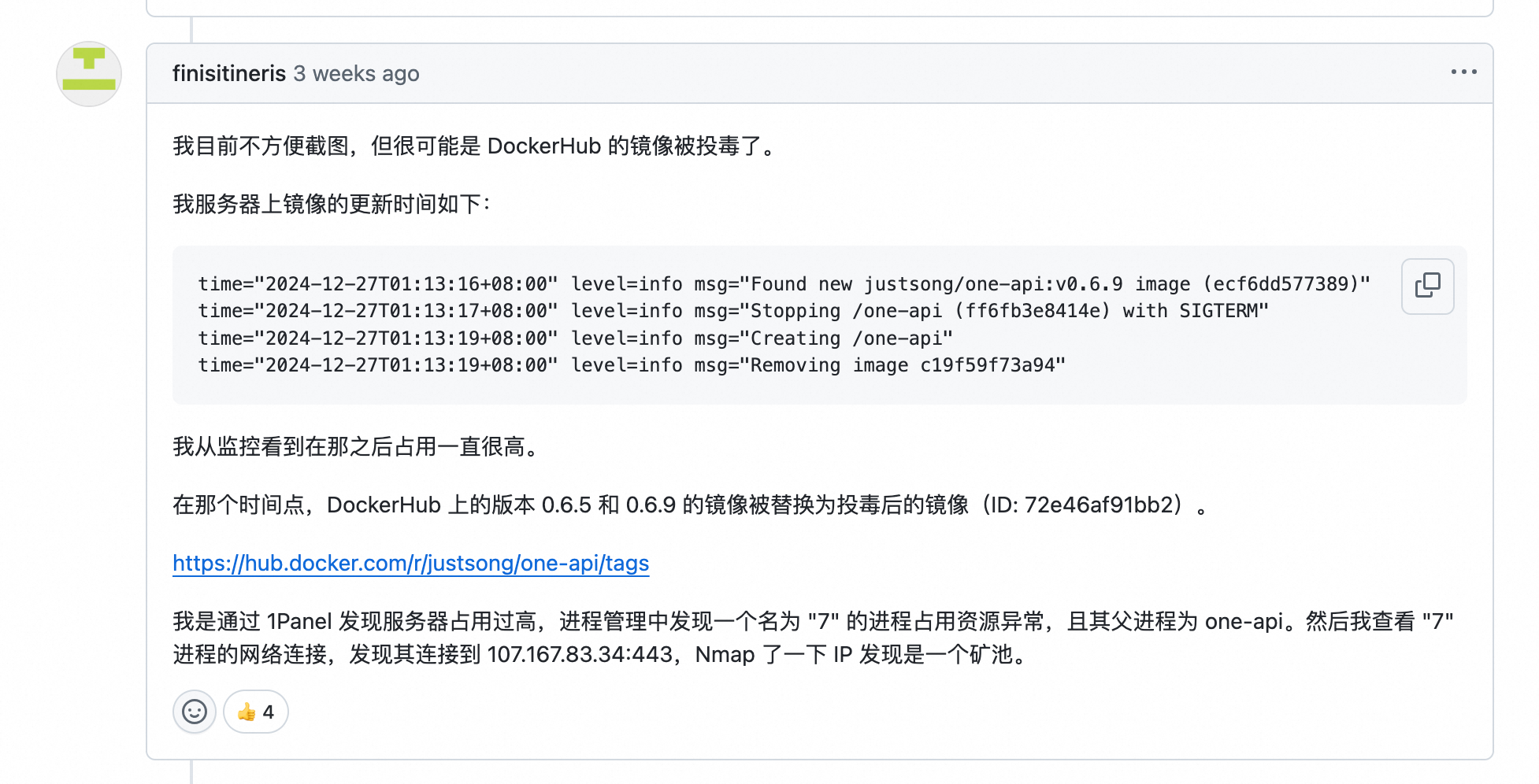 OneAPI 是在开源代码托管平台 GitHub 上拥有 2万 Star 的 AI 网关工具,该工具的用户发现安装最新版本镜像后,会固定消耗一定比例的 CPU: