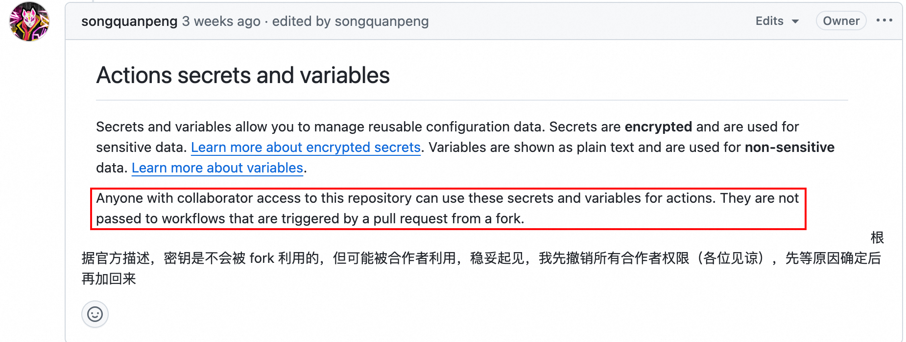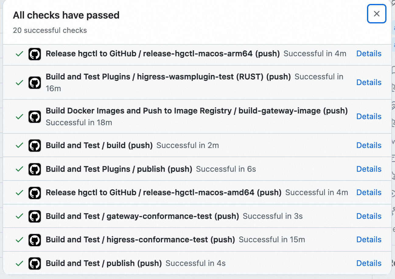 此外,每次新版本发布,不依赖人,而是由程序自动完成也很重要。Higress 社区在每次版本 release 发布后,会通过 GitHub Action 自动制作容器镜像以及安装包,镜像仓库密钥基于 GitHub Secret 存储。发布版本的权限可以给到社区里其他合作者,但无需提供给合作者镜像仓库的密码。