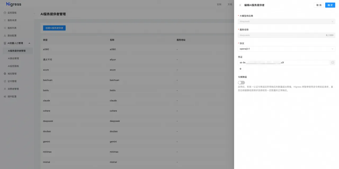 也可以选择跳过这个步骤,到 Higress 的控制台进行配置对应供应商的 API Key: