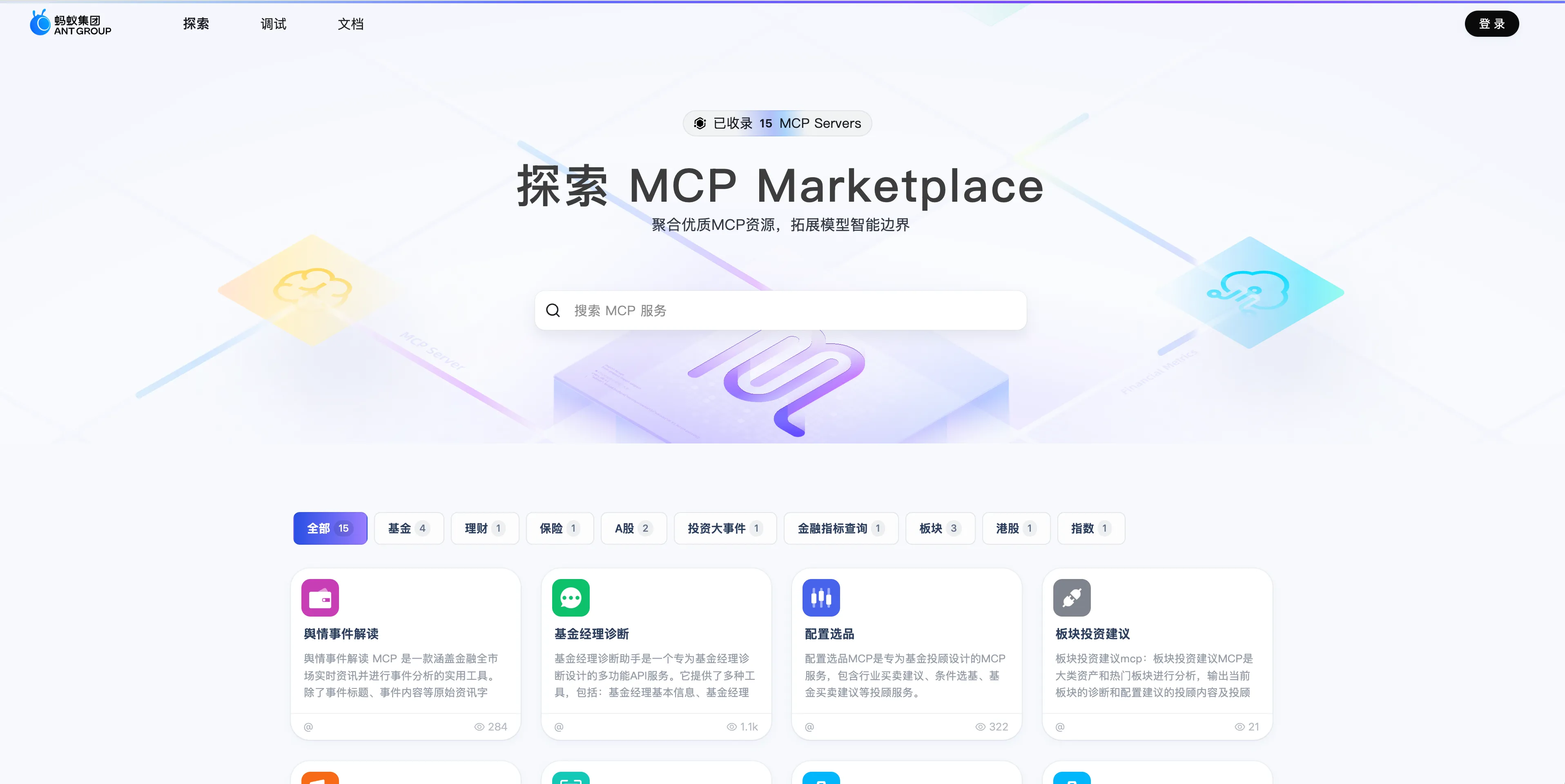 - 提升效率与可扩展性: 将特定能力模块化、服务化,便于智能体按需调用,也利于能力的持续迭代和复用。因此我们基于蚂蚁的金融专业能力,以及在宁波等项目沉淀的智能体研发经验,将一些有质量的金融数据、金融服务包装成MCP,构建一个MCP 市场,为专有云的智能体提供 SaaS 化服务。 我们旨在将沉淀的金融专业能力(知识、数据、流程、风控等) 进行标准化、服务化封装,构建一个金融能力“乐高”市场。SOFA AI 平台已上架并持续丰富一系列面向金融场景的MCP,为智能体提供强大的“专业工具箱”。 目前已经上架多个金融领域MCP, 如产品诊断、配置选品、行情解读、事件解读等。