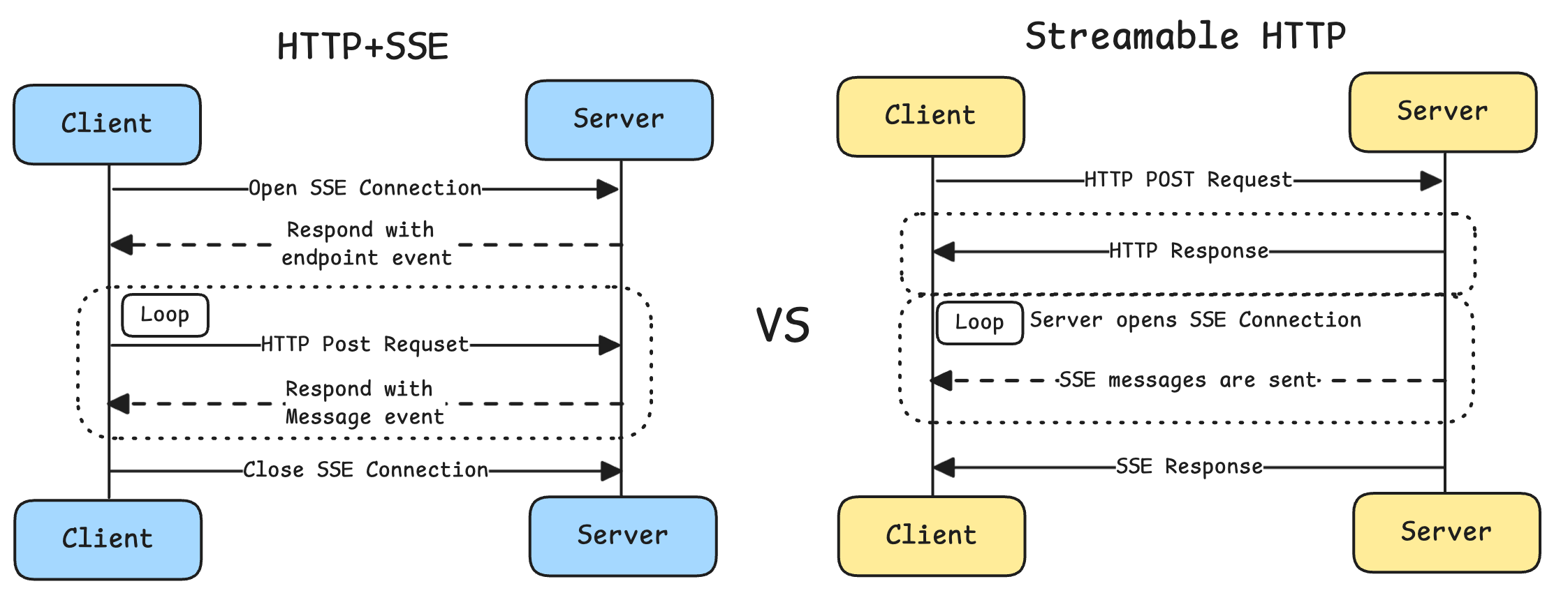 - Streamable HTTP 相比 HTTP + SSE 具有更好的稳定性,在高并发场景下表现更优。
