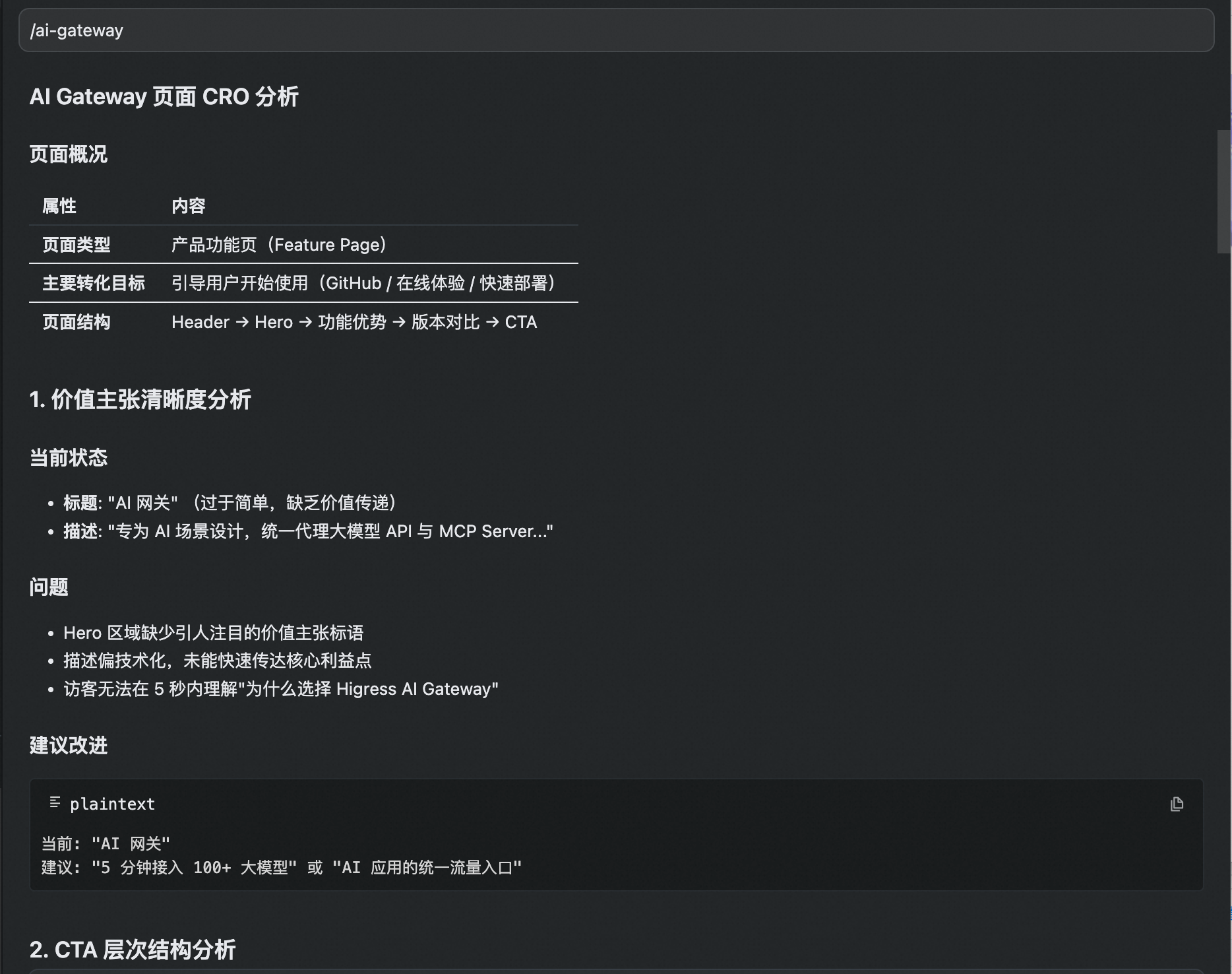 prompt: 对于 /ai-gateway 页面进行 CRO 优化:
