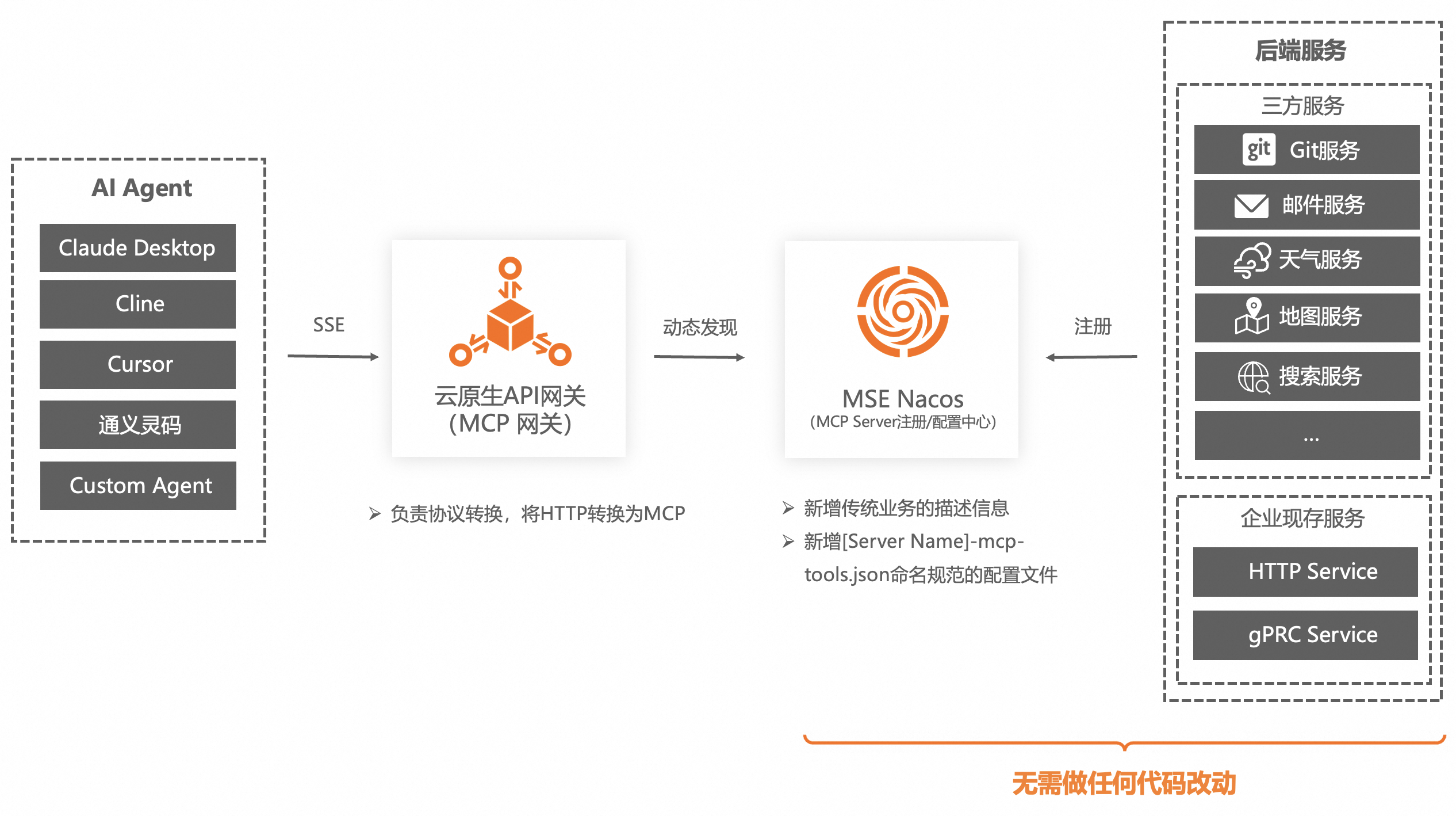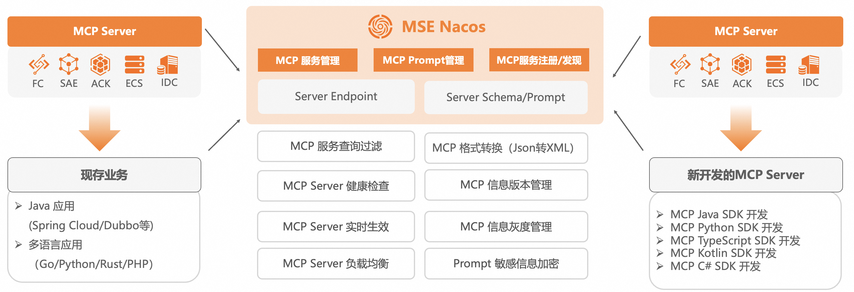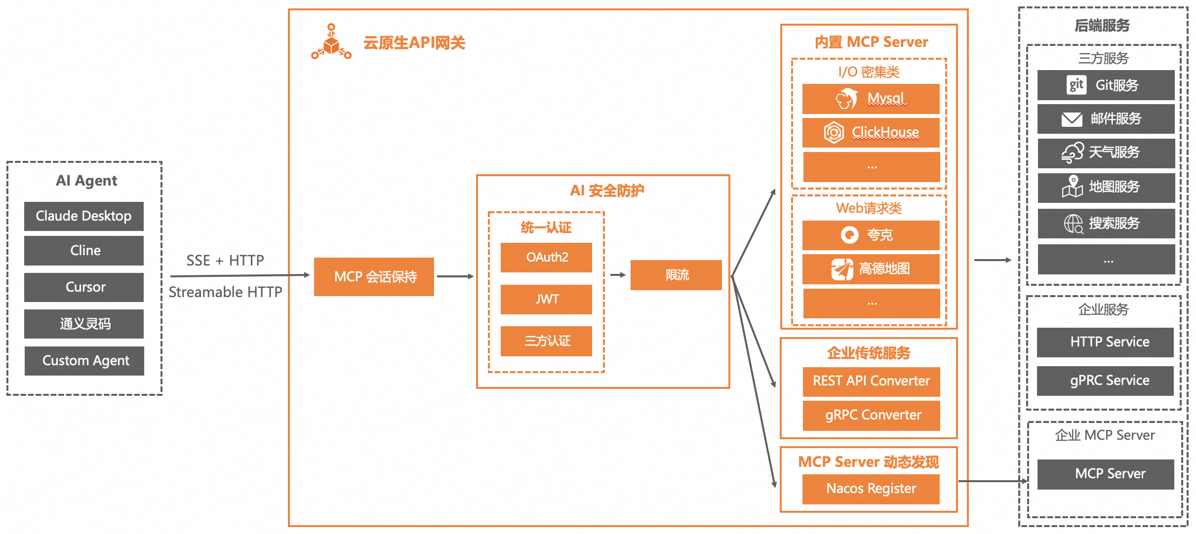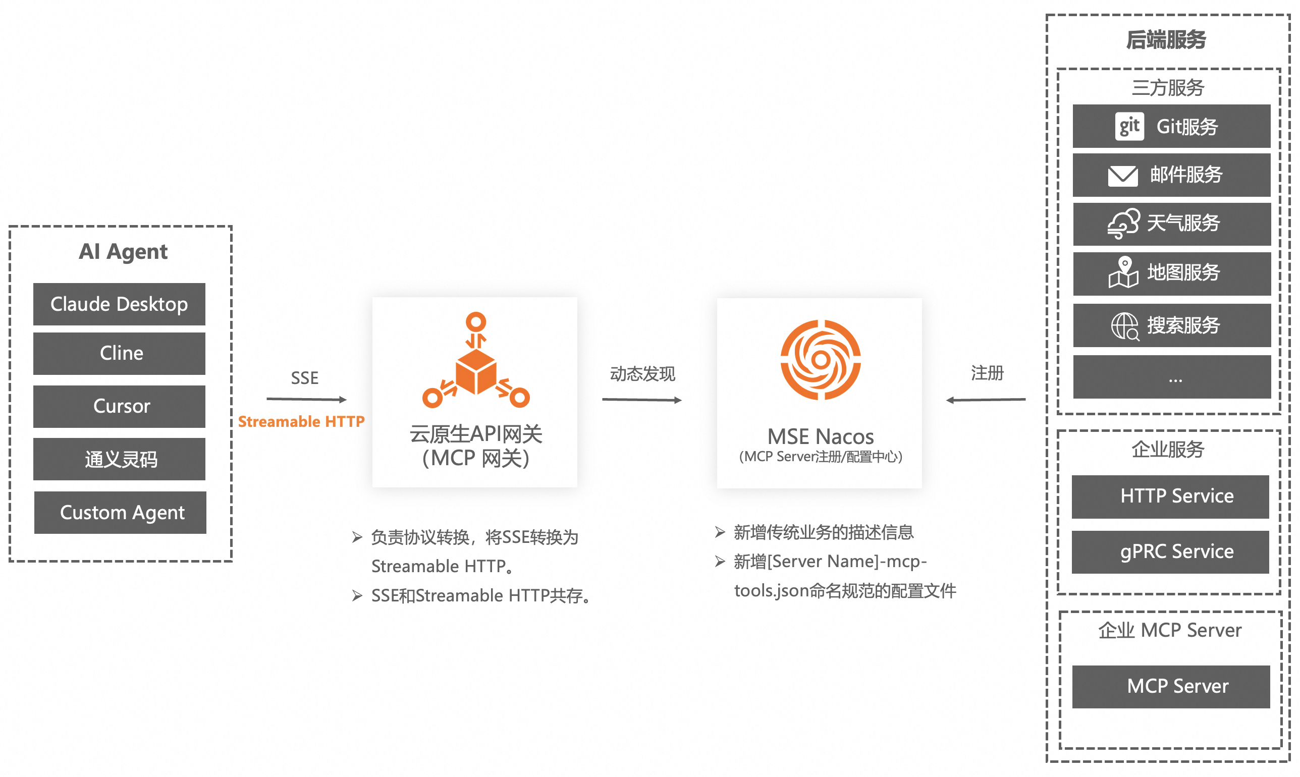 - SpringCloud服务/Dubbo服务/Go服务 -> 各类MCP Server