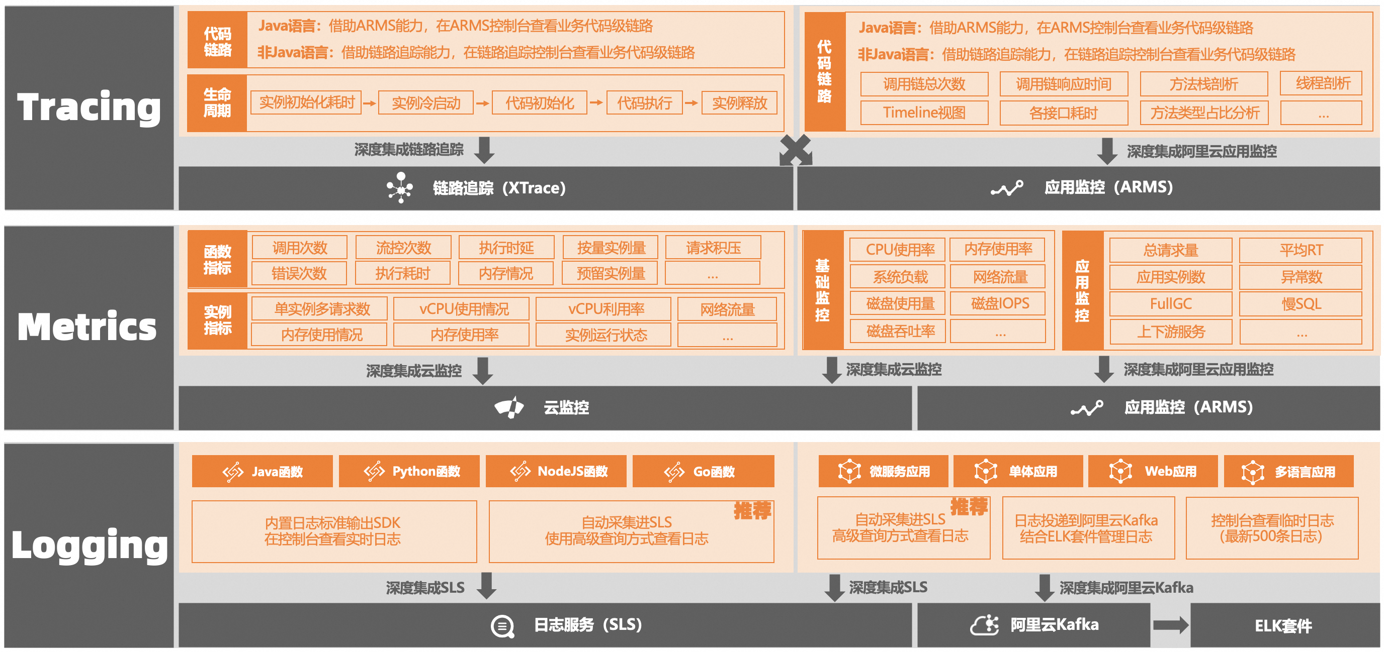 - 函数计算FC 和 Serverless应用引擎SAE 均与 应用监控ARMS 以及 链路追踪OpenTelemetry版 产品均做了深度集成。