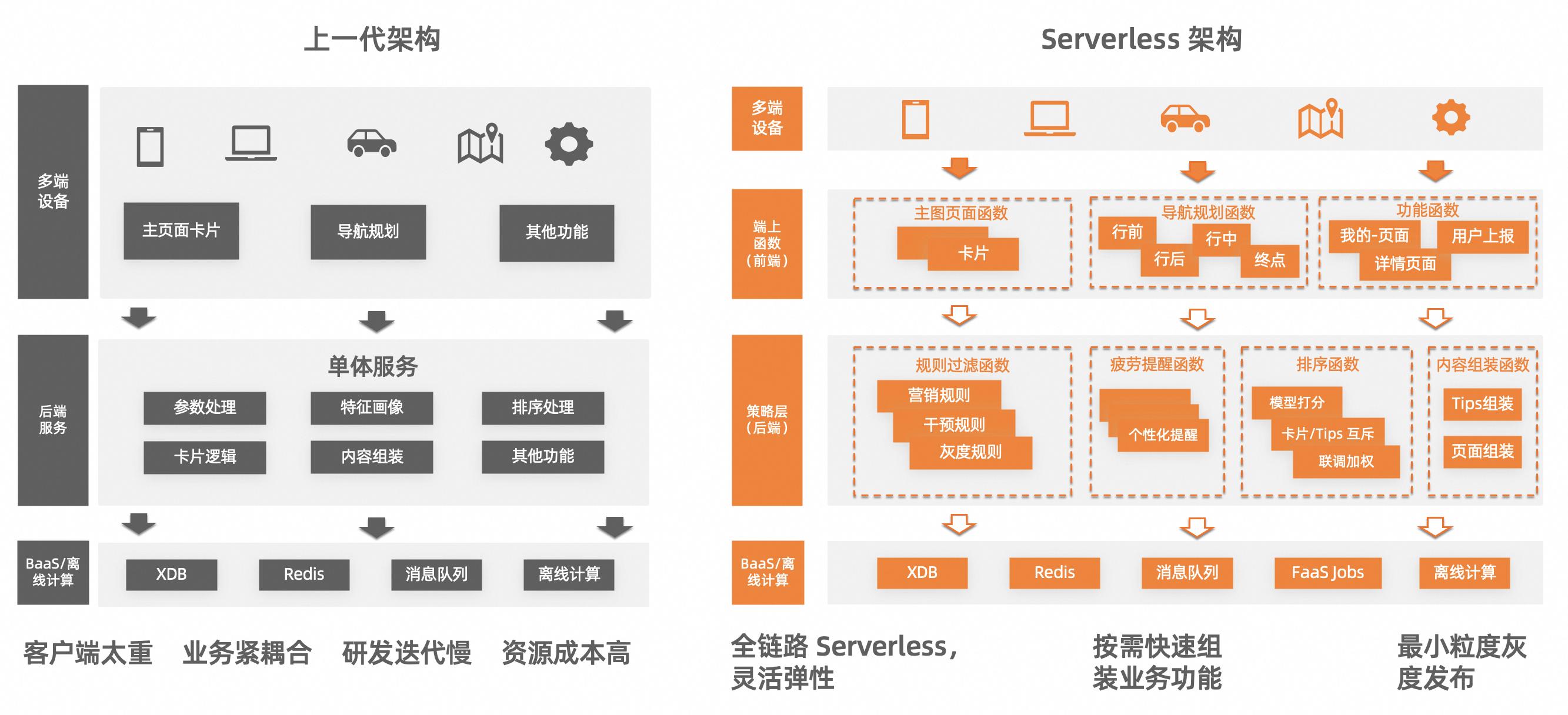 API First,前后端分离这两个概念已经存在很久了,海外企业遵循和实践的会比较好。因为我深耕在Serverless计算领域也有5年时间,对AWS的Lambda架构方案,Azure Functions架构方案,Azure App Service架构方案,GCP CloudFunction架构方案,GCP CloudRun架构方案有比较多的研究。接触了很多Serverless FaaS和Serverless PaaS架构的客户案例,包括负责落地了不少从双A迁移到阿里云的客户。基本上都是标准的基于APIG+FaaS模式的API First形态。但是在国内,这个模式实践的并不好,除了高德下决定使用函数计算重构了系统,实现了真正的API First,前后端分离模式以外,鲜有客户有这种模式的实践,也许是有太重的历史包袱。
