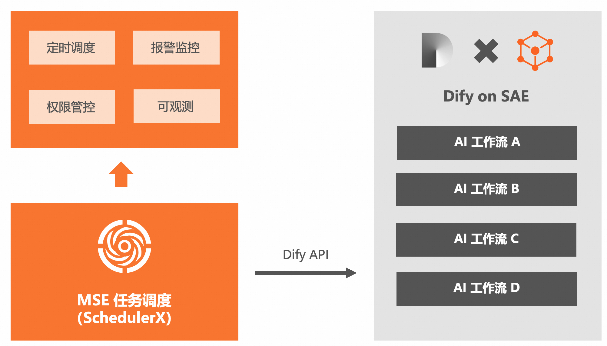 | 功能 | MSE任务调度 + Dify | 开源Dify |