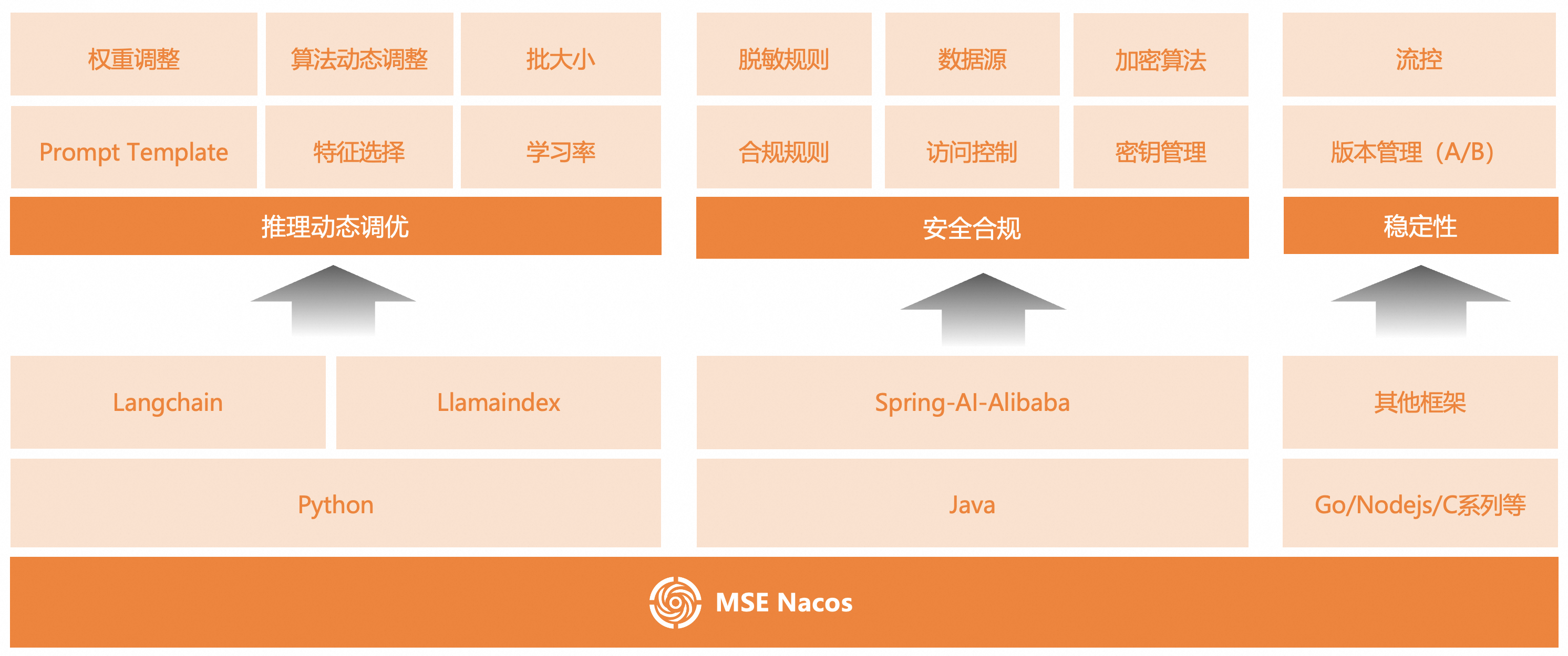- 支持常见的AI框架和AI模型,包括 Spring AI Alibaba / LLamaIndex / Langchain / 通义千问2 / OpenAI / PromptFlow等。