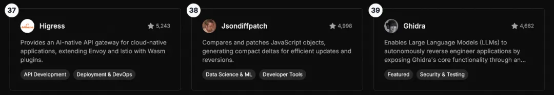 此次发布的 Leaderboard,按照 Star 数量进行排名,展示了全球最受欢迎的 MCP 工具和服务器。