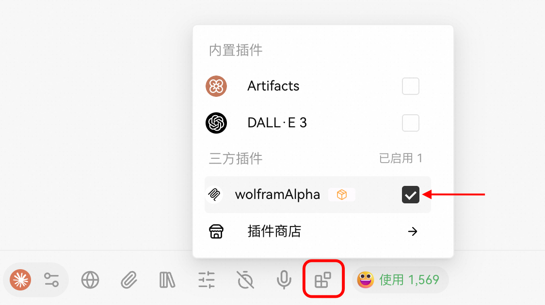 在对话界面,启用wolframAlpha插件。