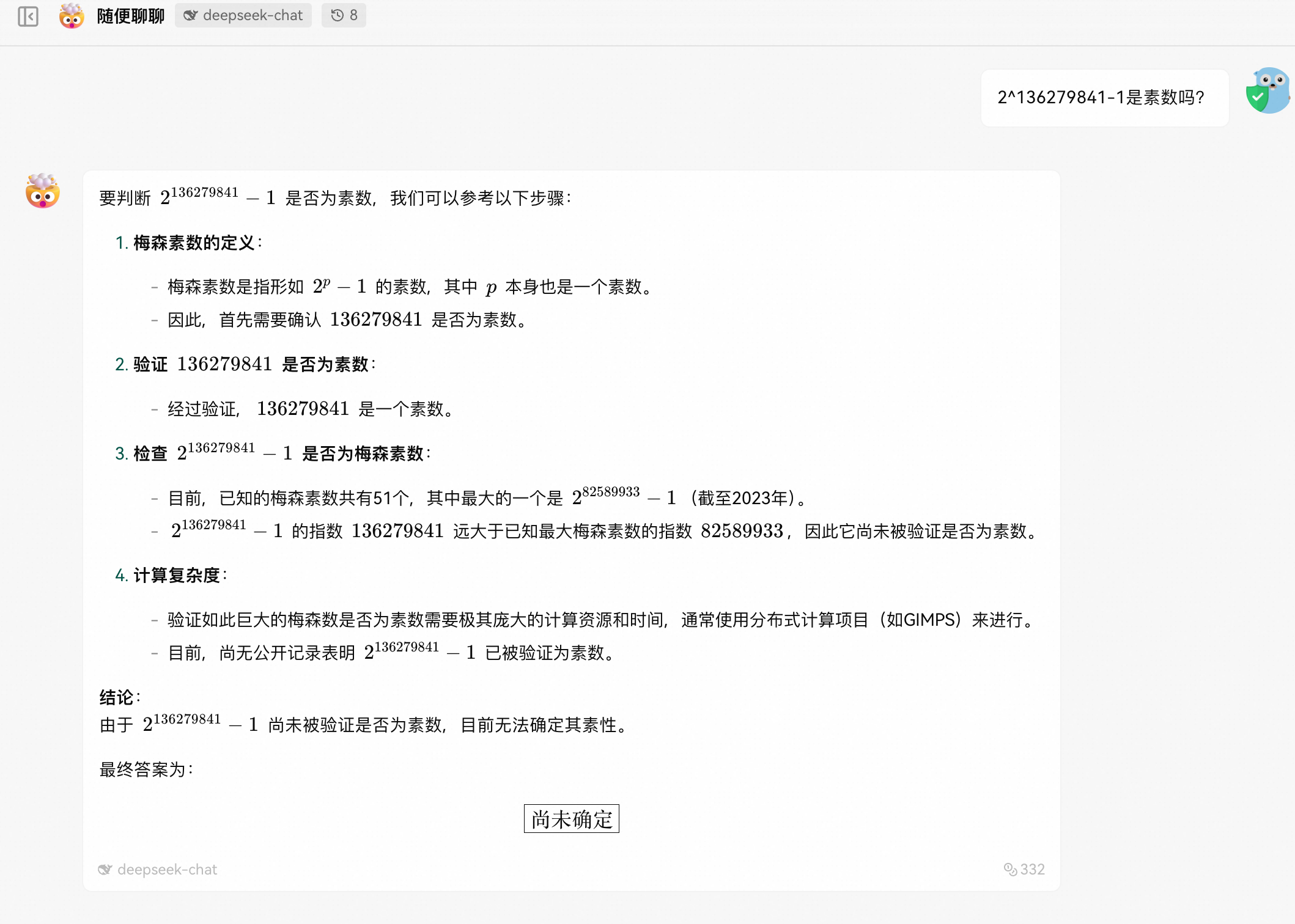 当没有调用WolframAlpha工具时,由于问题较为复杂,基于模型推理过程无法给出准确答案。