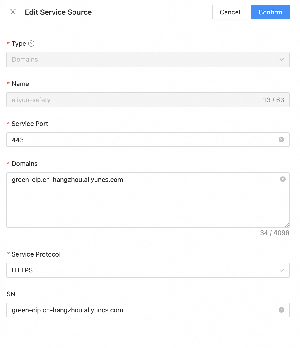 - SNI: Same as the domains