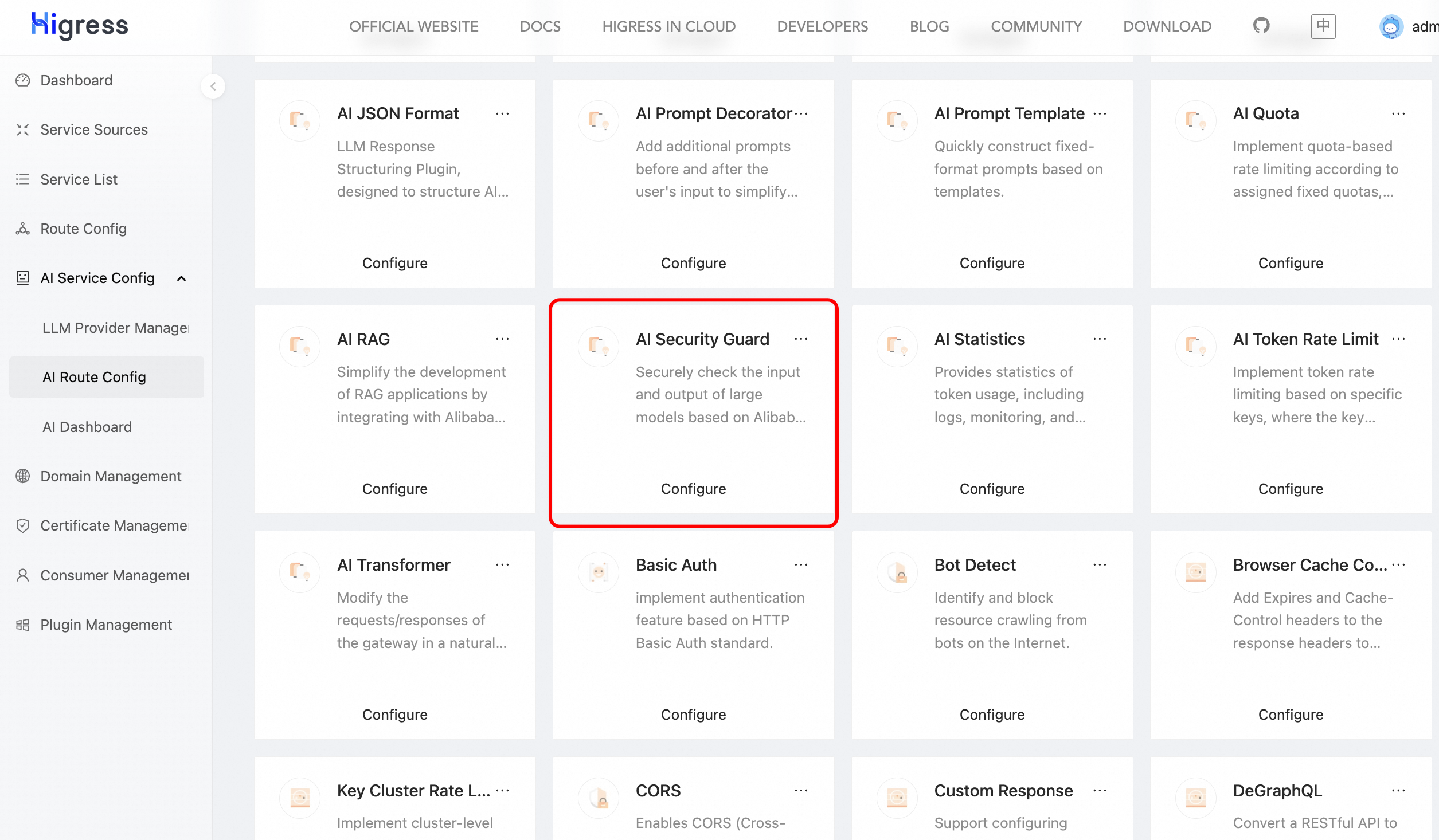 In the AI Route Config, configure strategy for aliyun and select AI Safety Guard.