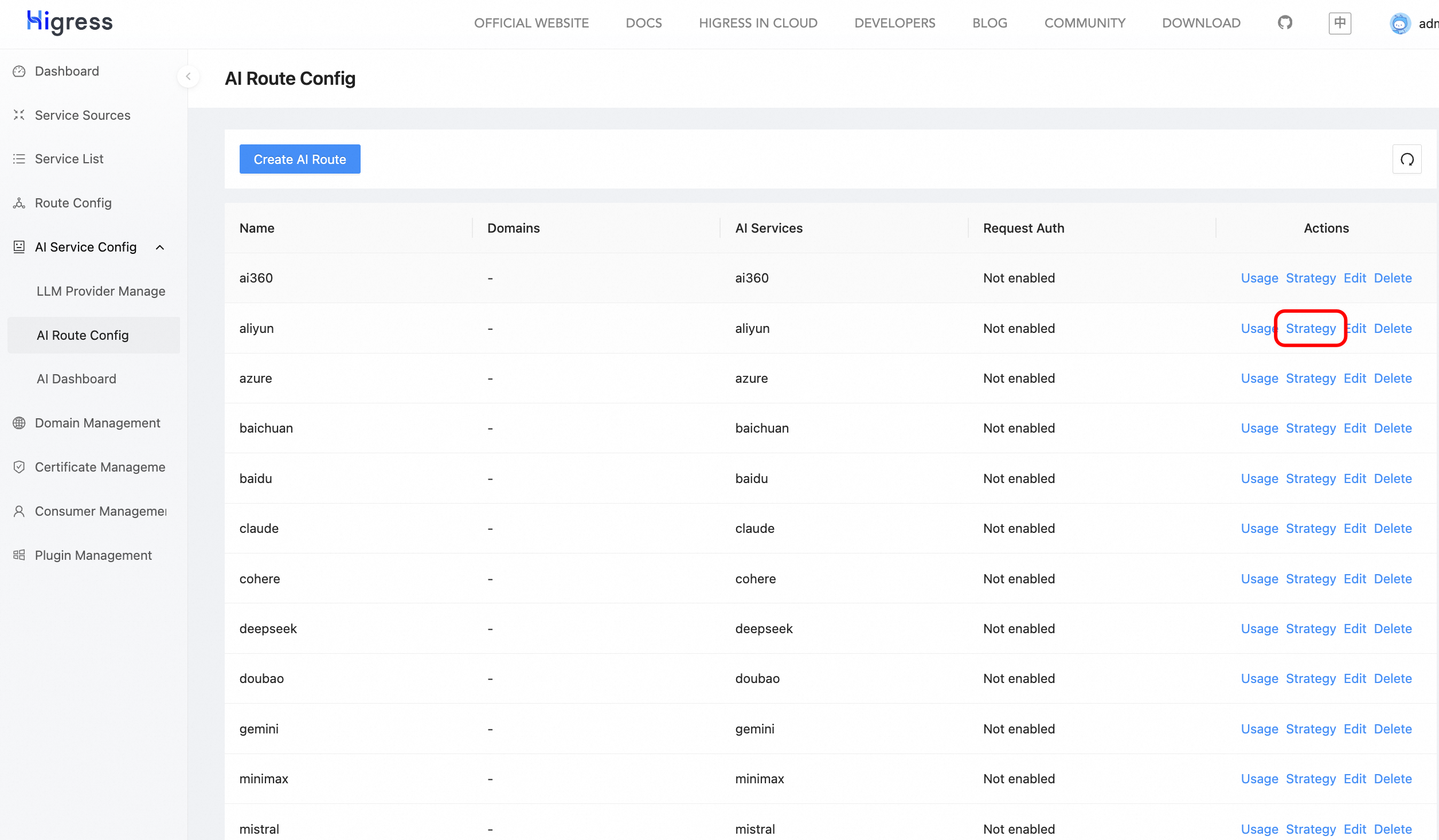 Configure AI Route Strategy