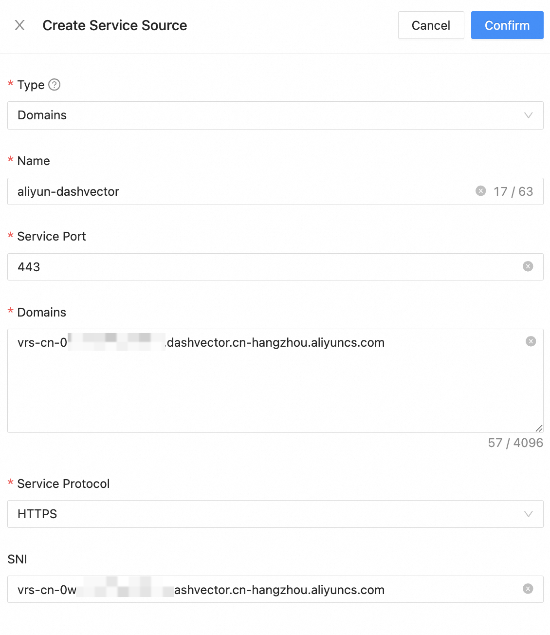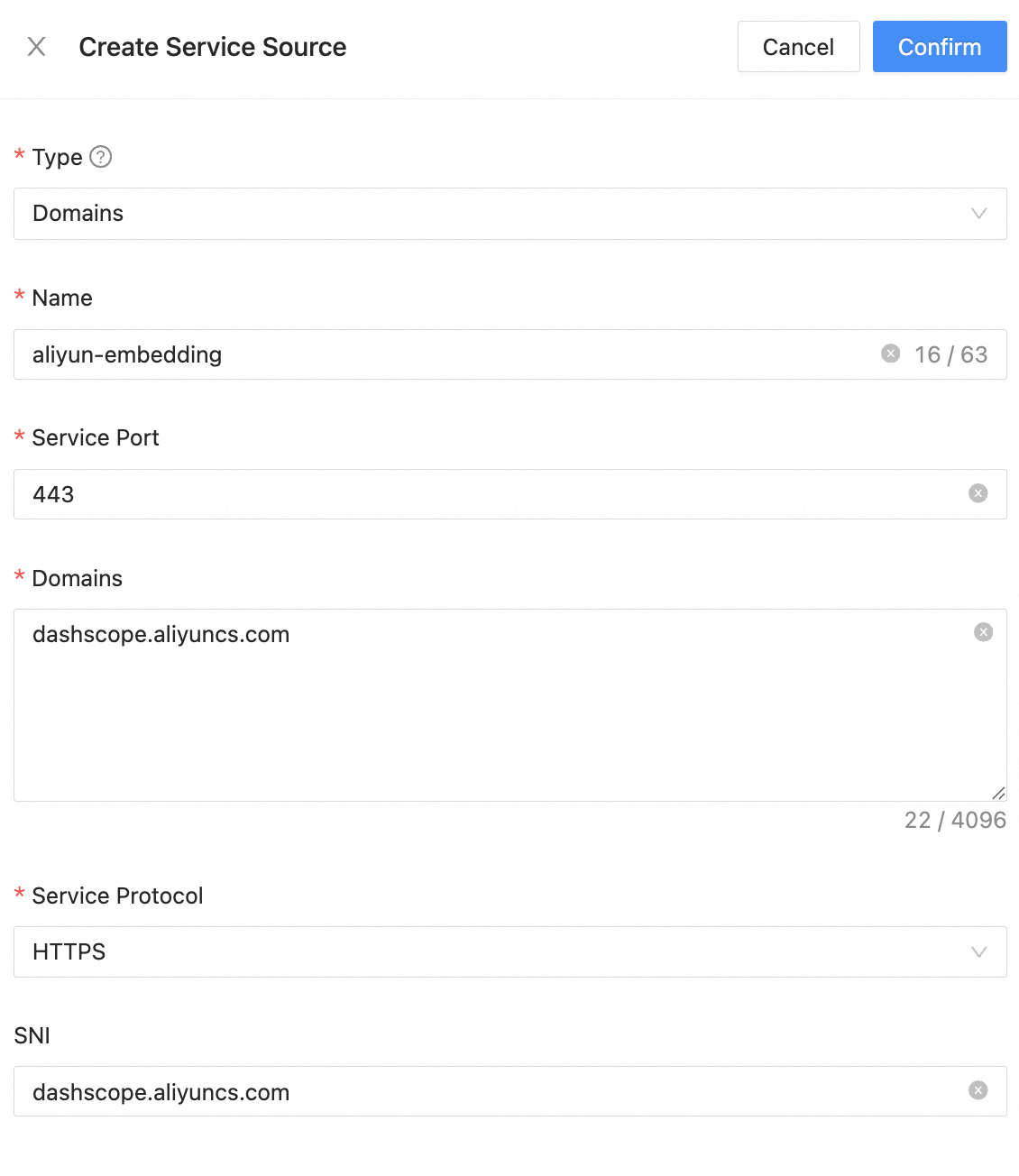Fill in the corresponding fields in the Service Sources: