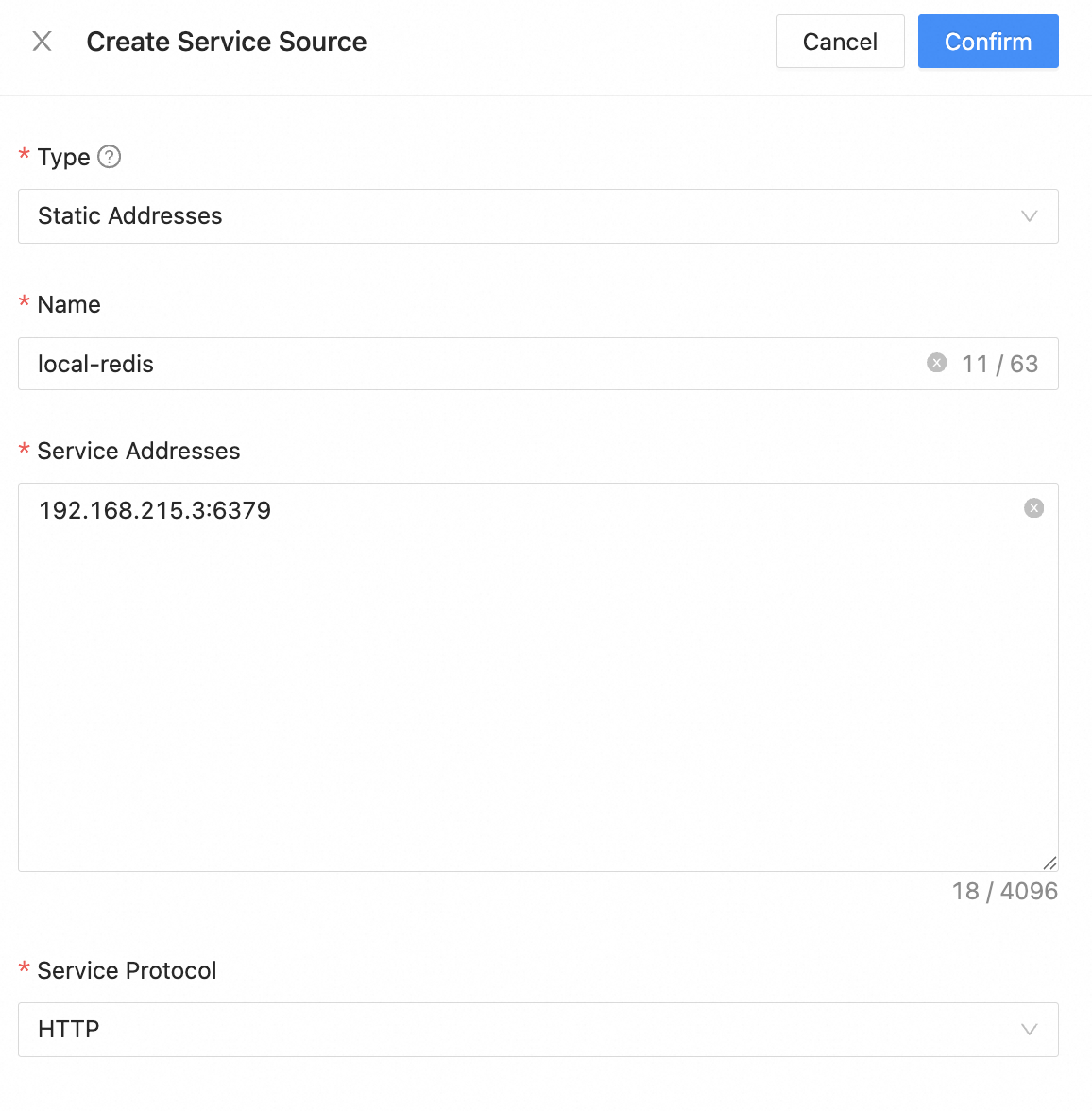 - Service Address: Concatenate the IP address of my-redis with the service port