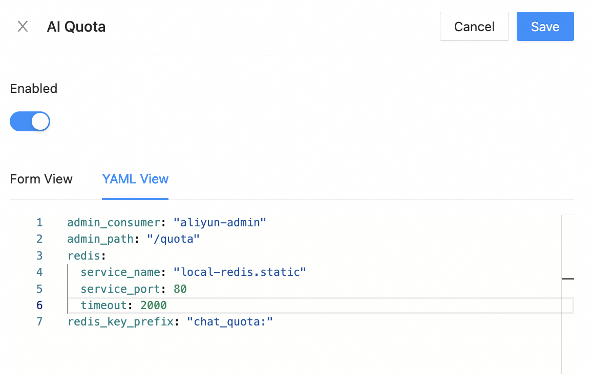 redis_key_prefix: 'chat_quota:'admin_consumer: aliyun-adminadmin_path: /quotaredis: service_name: local-redis.static service_port: 80 timeout: 2000