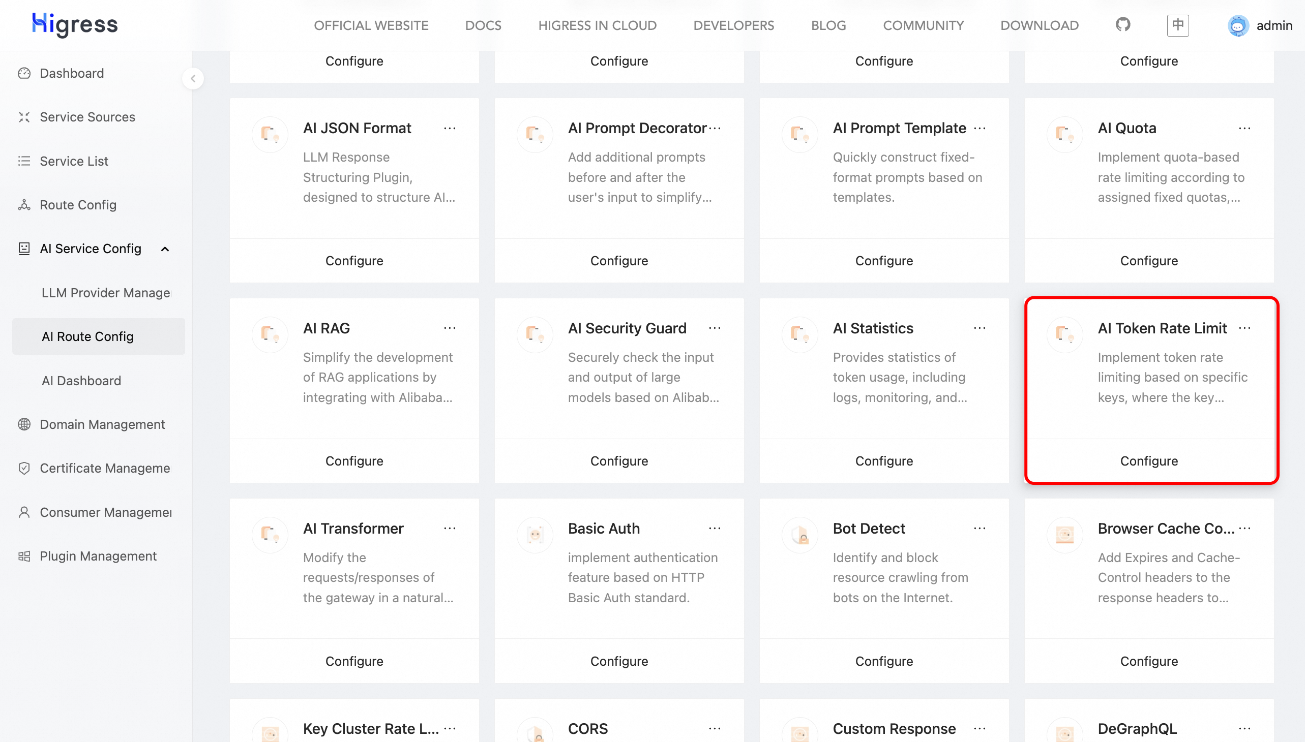 In the AI Route Config, click Edit and configure AI Token Rate Limit for aliyun.